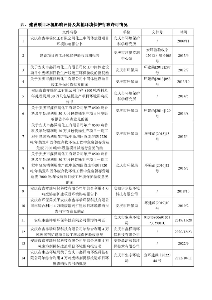 安慶市鑫祥瑞環(huán)保科技有限公司2023年環(huán)境信息公開內(nèi)容